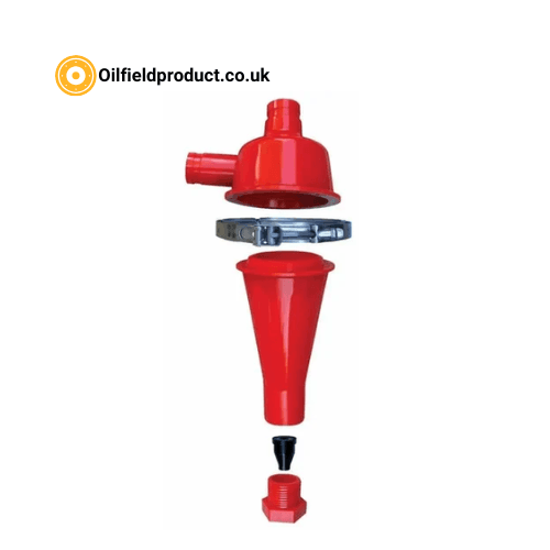 – 5” hydrocyclone cone- Separates fine particles (20–100 microns)- Polyurethane/ceramic liner- High-efficiency flow design- API/ISO certified